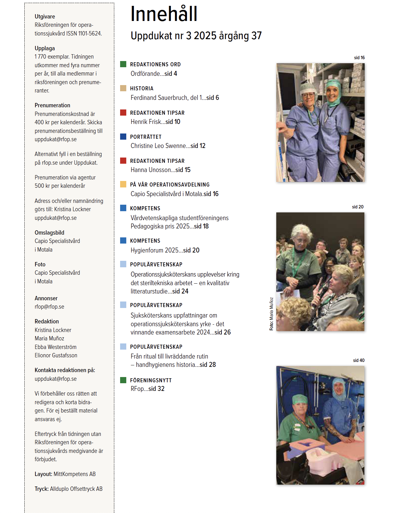 Medlemstidningen Uppdukat innehåller aktuella artiklar som belyser olika frågor av betydelse för professionen. Uppdukat har både yrkesinriktade och vetenskapliga artiklar i varje nummer.